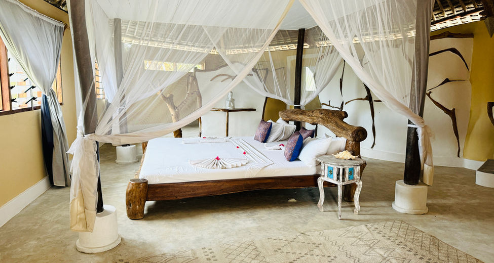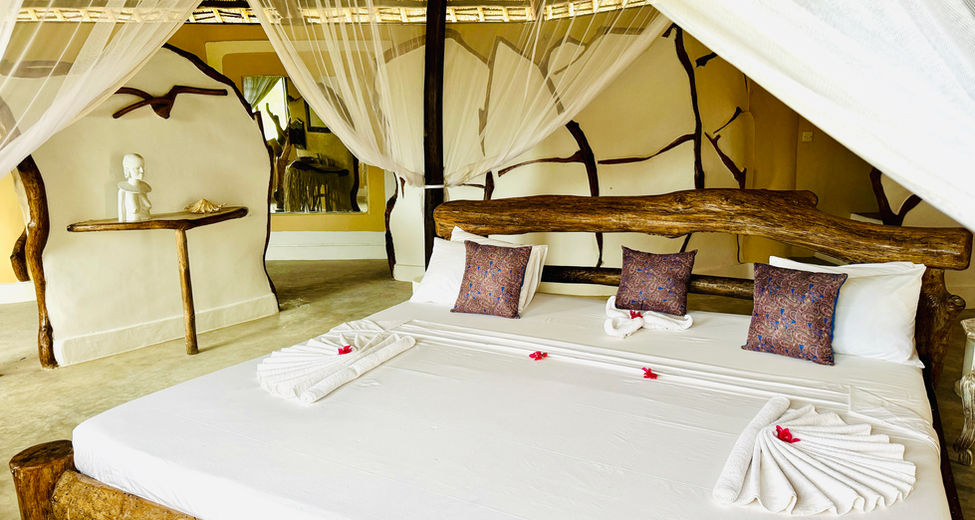 Many of the rooms have no glass but mosquito nets both on the windows and obviously on the beds.